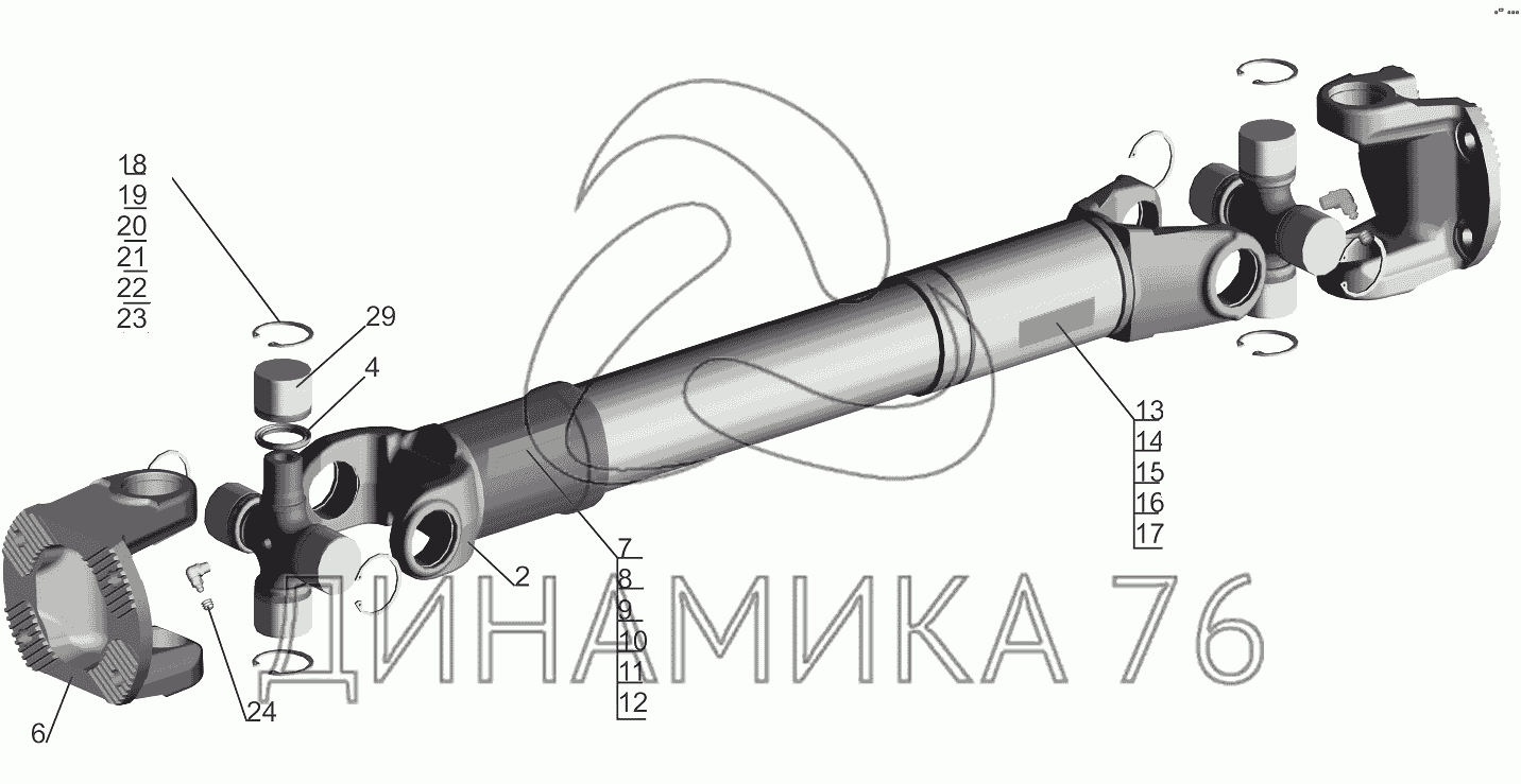 Перечень комплектующих от Вал карданный 6430-2201010 на МАЗ-5440B9, 6430B9