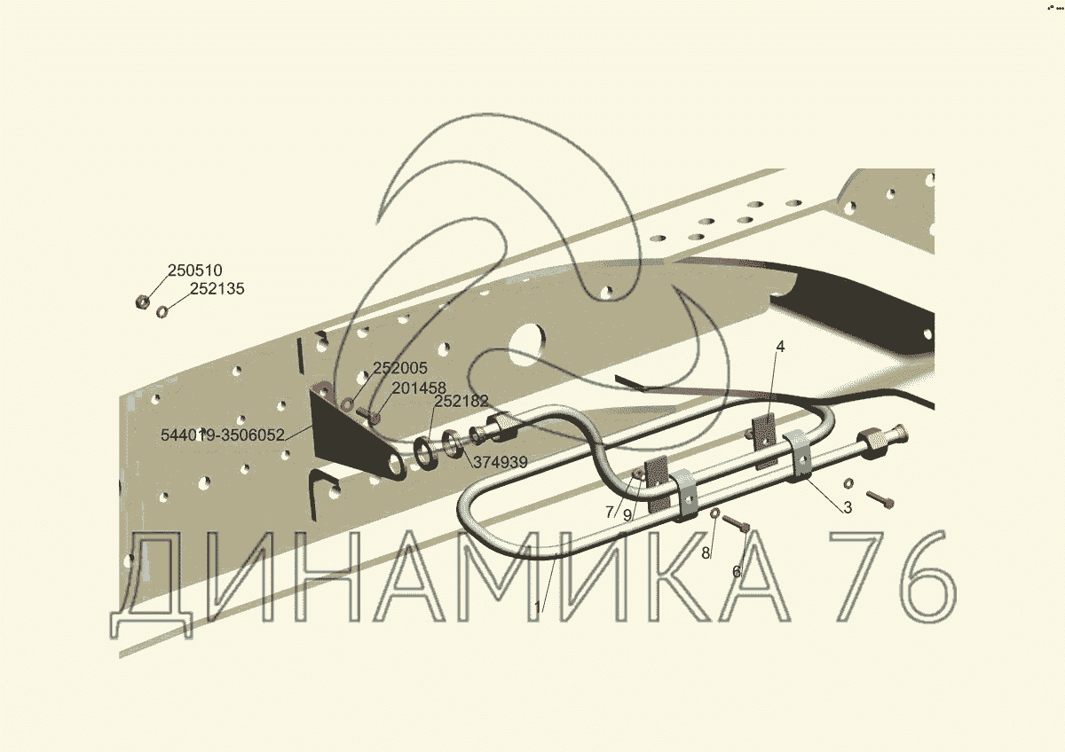 Схемы запчастей предназначены для справочных целей! Мы продаем не все запчасти от Крепление охладителя 544019-3506020 на МАЗ-5440E9, представленные в этом списке.