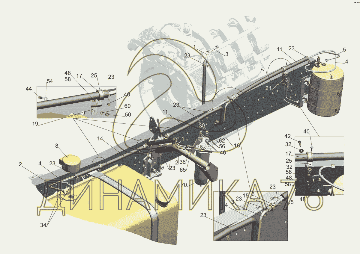 Схемы запчастей предназначены для справочных целей! Мы продаем не все запчасти от Крепление топливопроводов 544019-1104002 на МАЗ-5440E9, представленные в этом списке.
