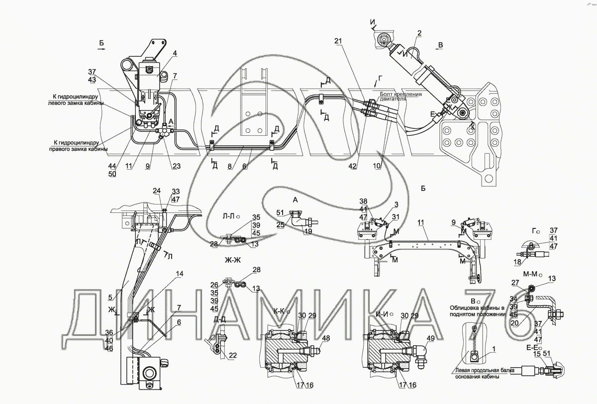 Перечень комплектующих от Механизм подъема кабины 544019-5000040 на МАЗ-5440E9