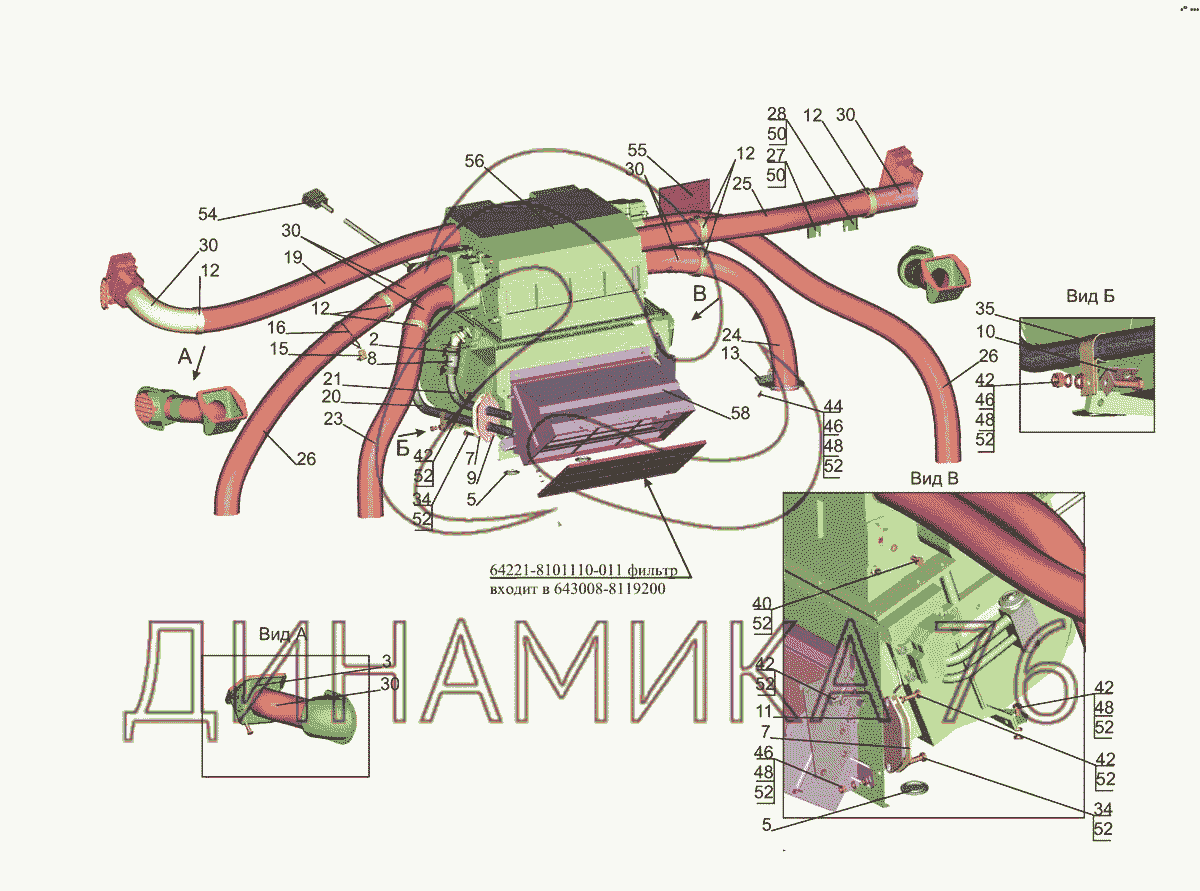 Перечень комплектующих от Установка отопителя 631019-8100001 на МАЗ-5440E9
