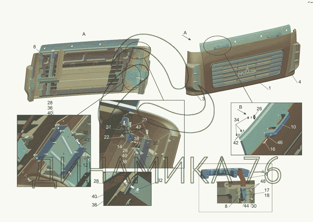 Схемы запчастей предназначены для справочных целей! Мы продаем не все запчасти от Установка щитков 6432-8400014-000 на МАЗ-5440E9, представленные в этом списке.