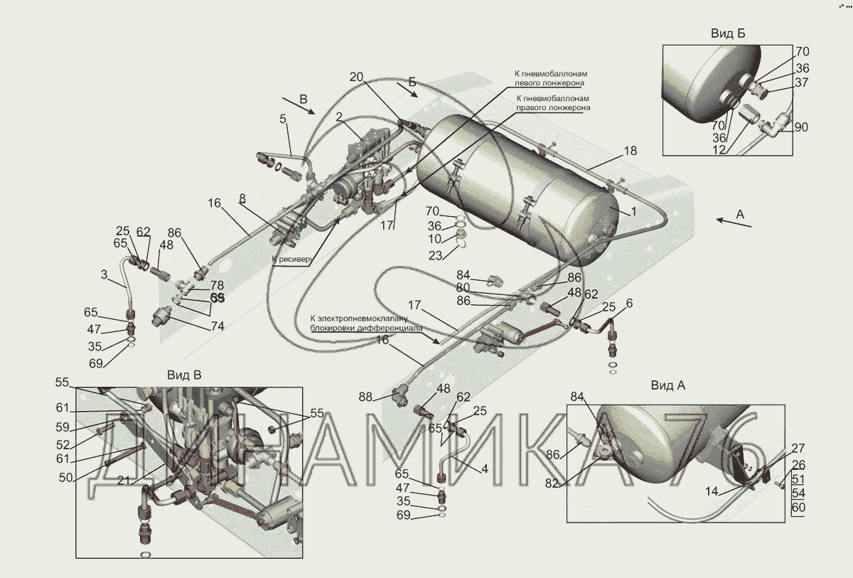 Перечень комплектующих от Установка трубопроводов ECAS 5440Е9-2900018 на МАЗ-5440E9