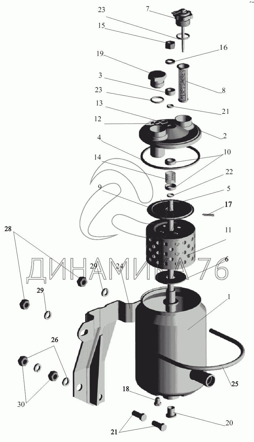 Перечень комплектующих от Бак масляный 64221-3410008 на МАЗ-551605