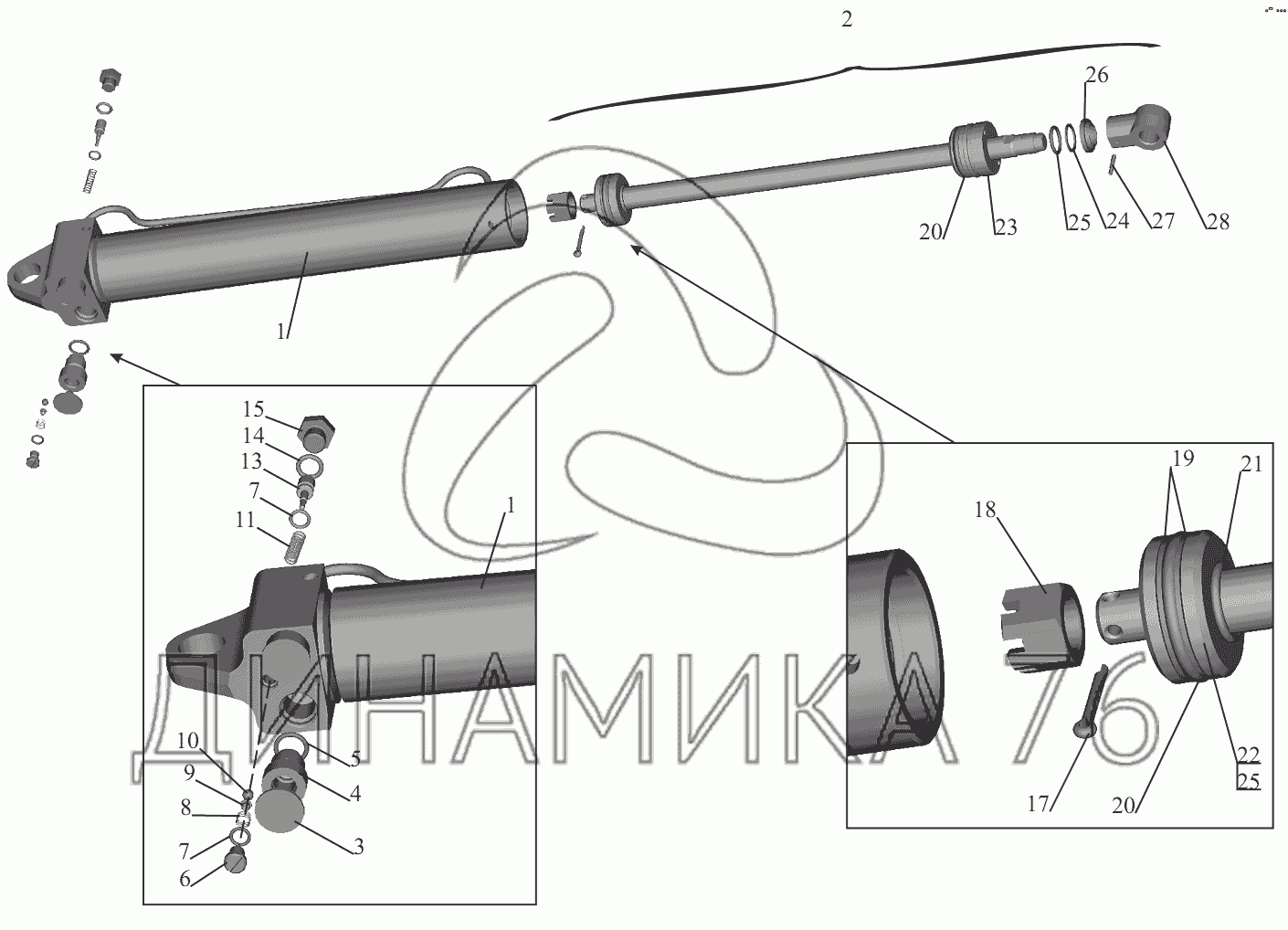 Схемы запчастей предназначены для справочных целей! Мы продаем не все запчасти от Гидроцилиндр 64221-5003010 на МАЗ-551605, представленные в этом списке.