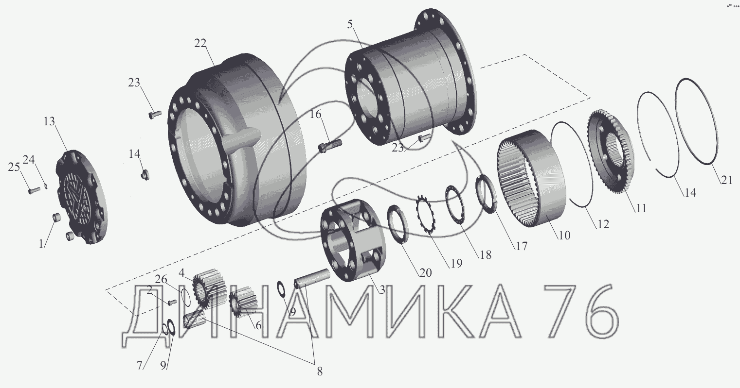 Перечень комплектующих от Колесный редуктор среднего моста на МАЗ-551605