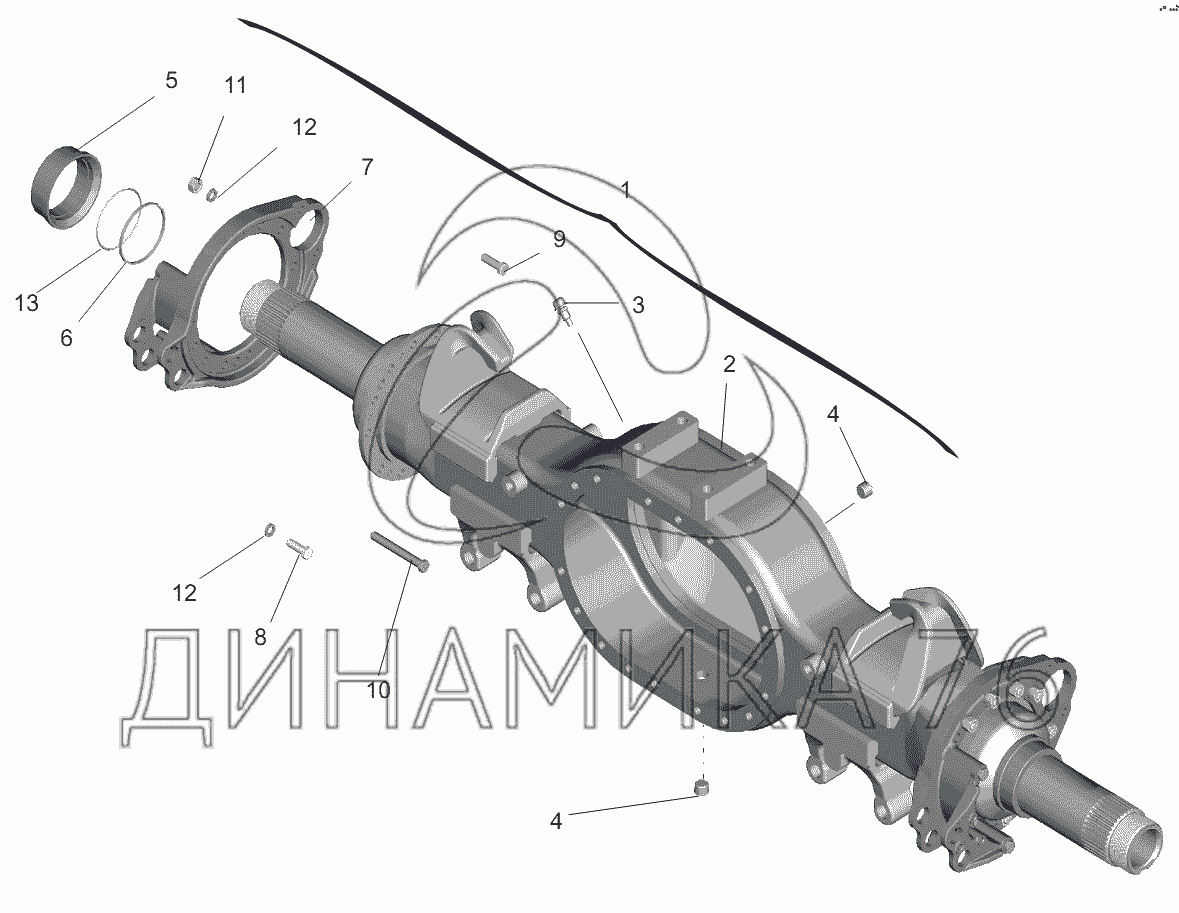 Перечень комплектующих от Мост задний. Картер моста на МАЗ-551605