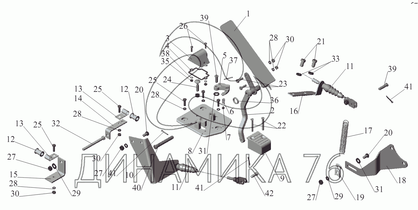 Перечень комплектующих от Привод управления двигателем 543208-1108002 на МАЗ-551605
