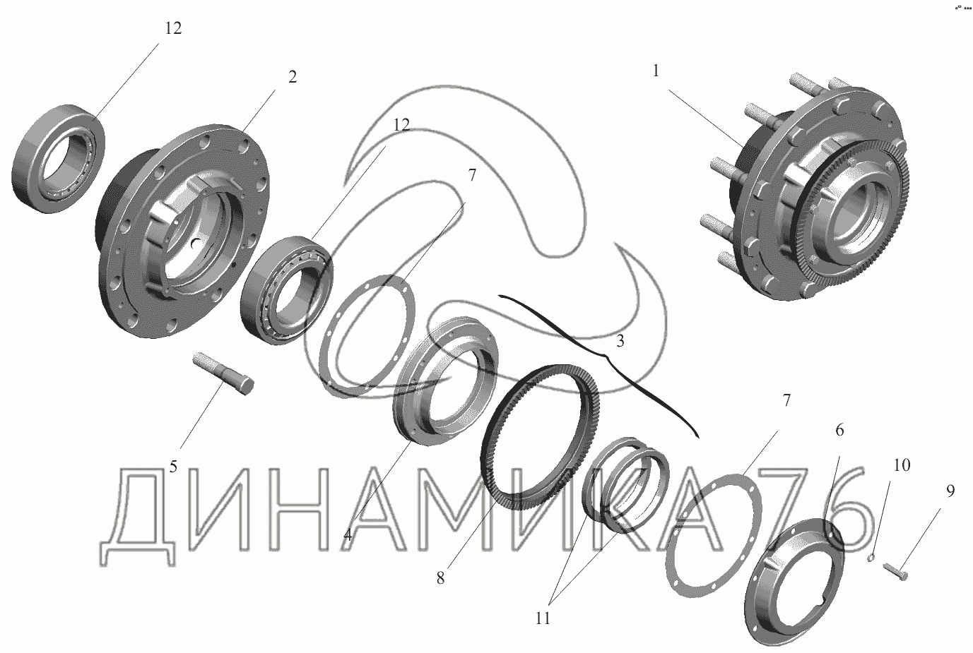 Перечень комплектующих от Ступица заднего моста на МАЗ-551605