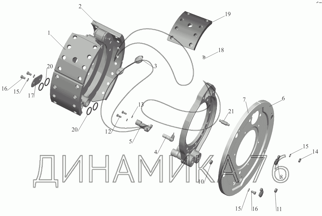 Перечень комплектующих от Тормоз колеса на МАЗ-551605