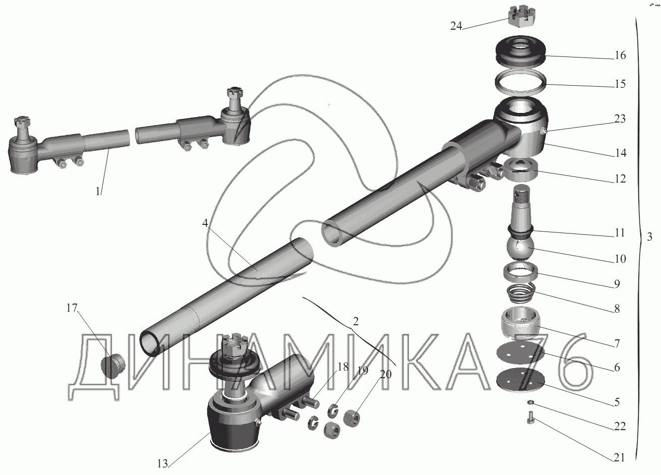Перечень комплектующих от Тяга поперечная рулевая на МАЗ-551605