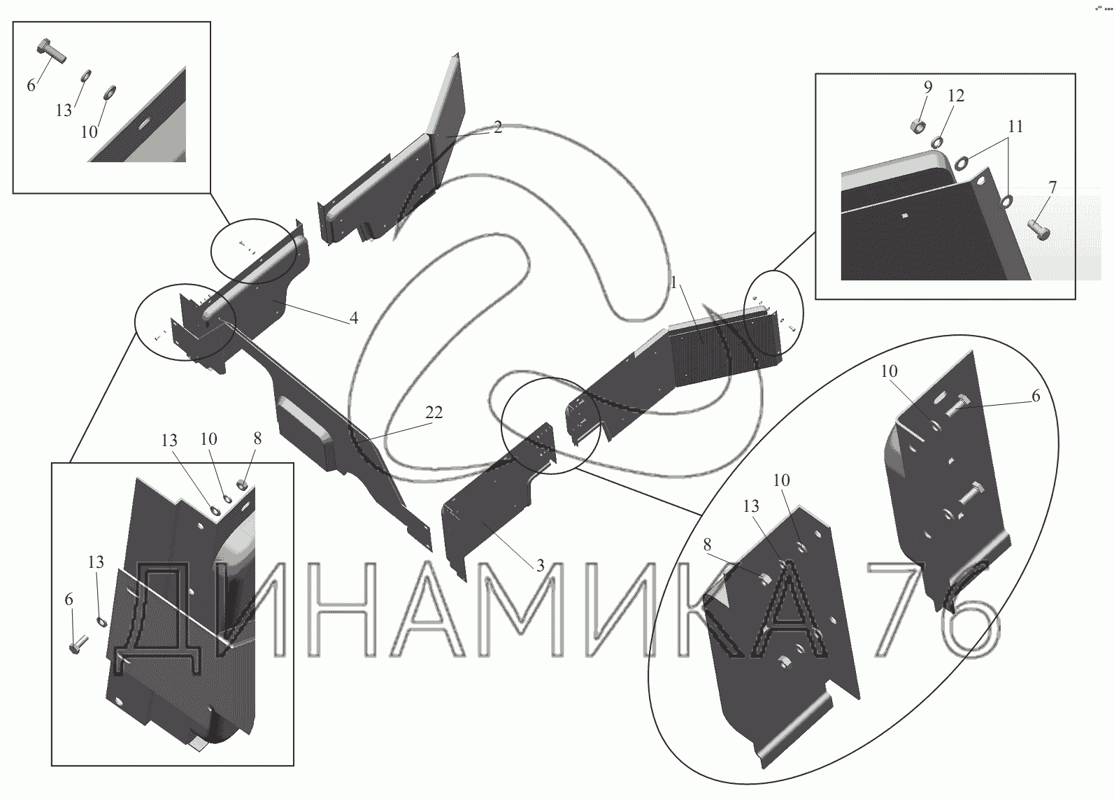 Перечень комплектующих от Установка экранов 642208-8400030-070 на МАЗ-551605
