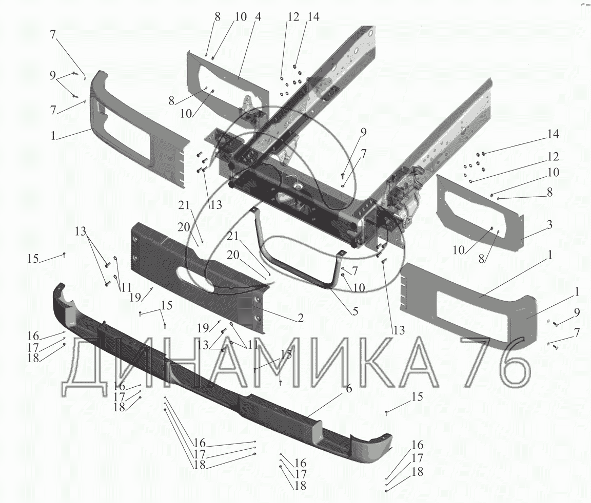 Перечень комплектующих от Крепление бампера на МАЗ-551608, 630308