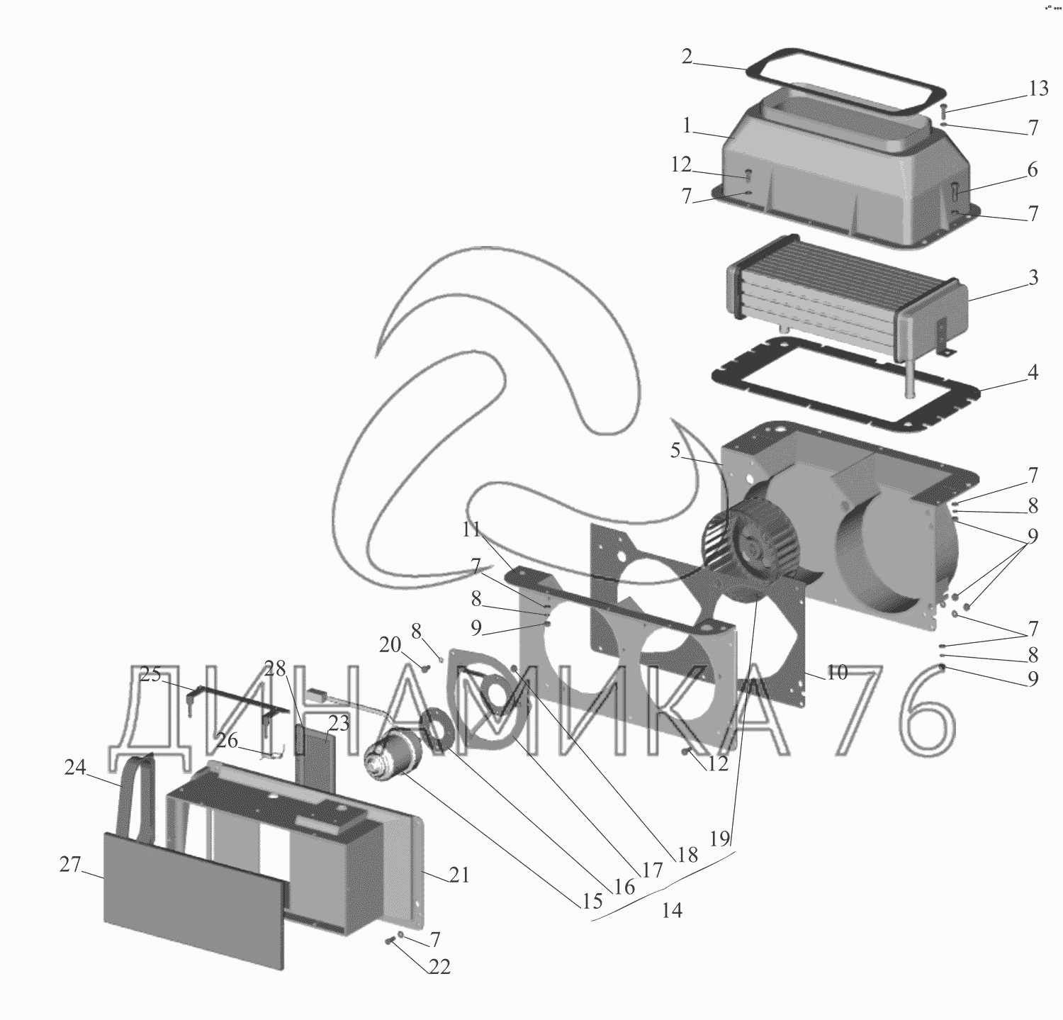 Перечень комплектующих от Отопитель 64221-8101010 на МАЗ-551608, 630308