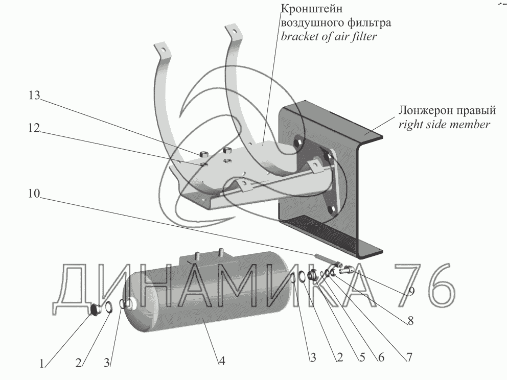 Перечень комплектующих от Ресивер регенерации 64226-3513005 на МАЗ-551608, 630308