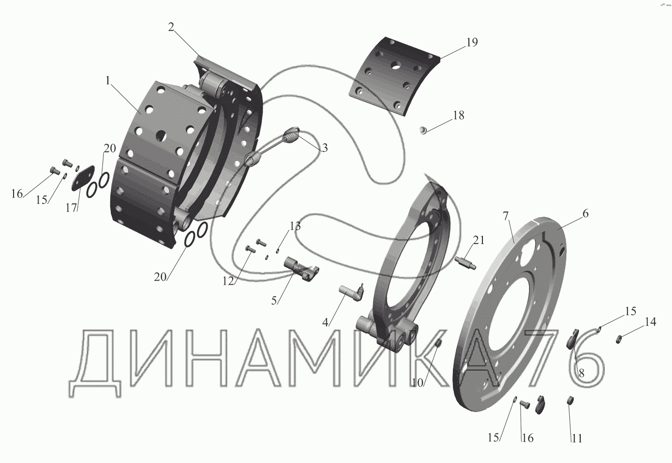 Перечень комплектующих от Тормоз колеса на МАЗ-551608, 630308