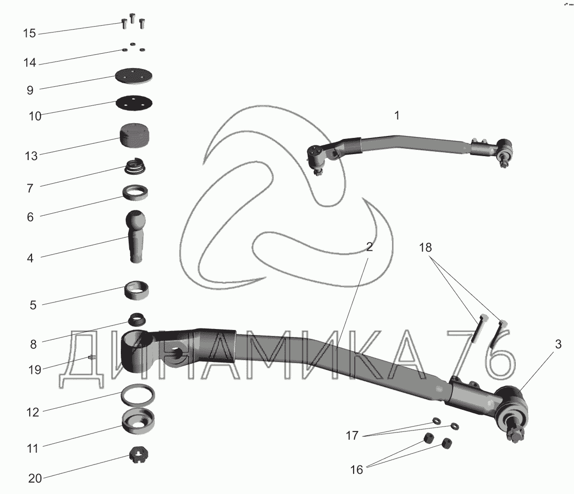 Перечень комплектующих от Tяга продольная 64221-3003010 на МАЗ-551608, 630308