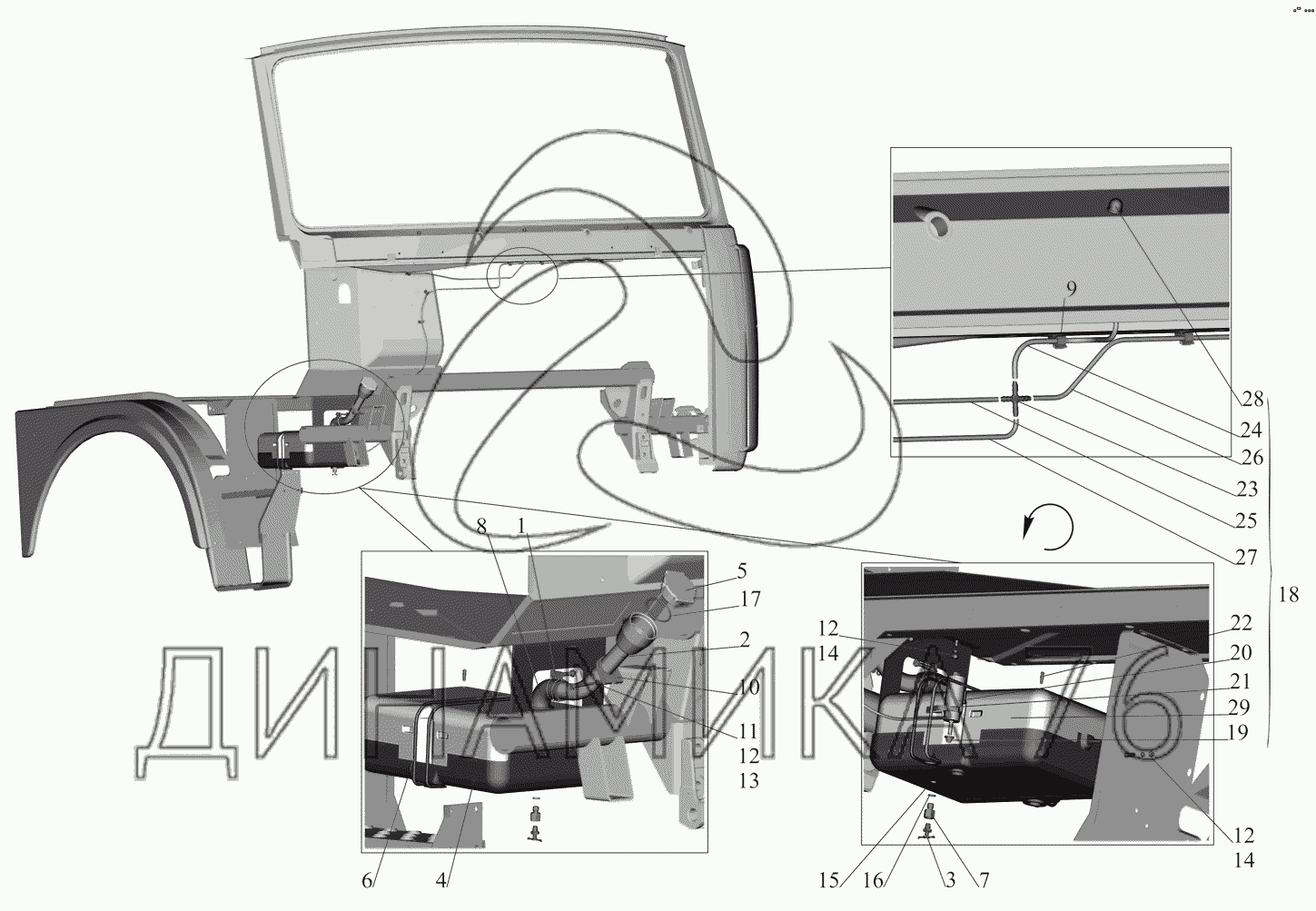 Перечень комплектующих от Установка омывателя на МАЗ-551608, 630308