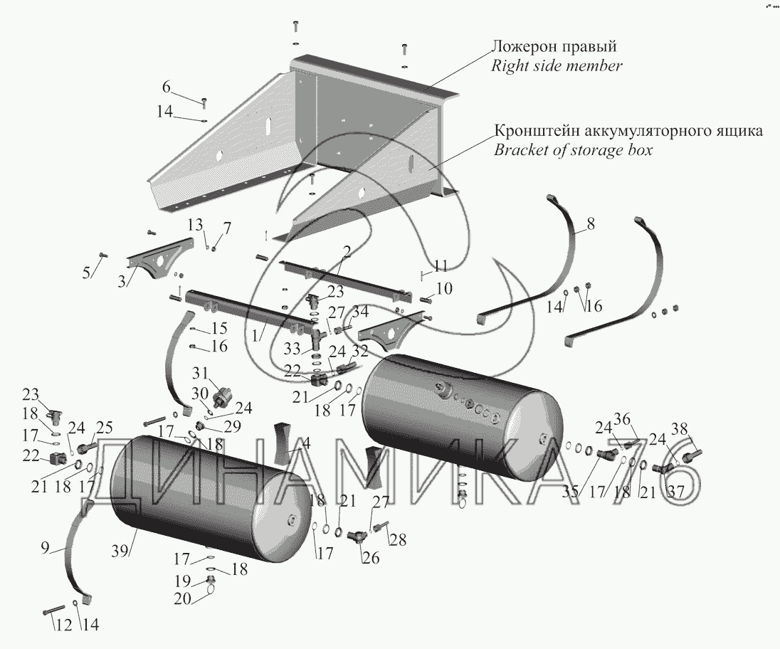 Перечень комплектующих от Установка ресиверов 630300-3513004 на МАЗ-551608, 630308