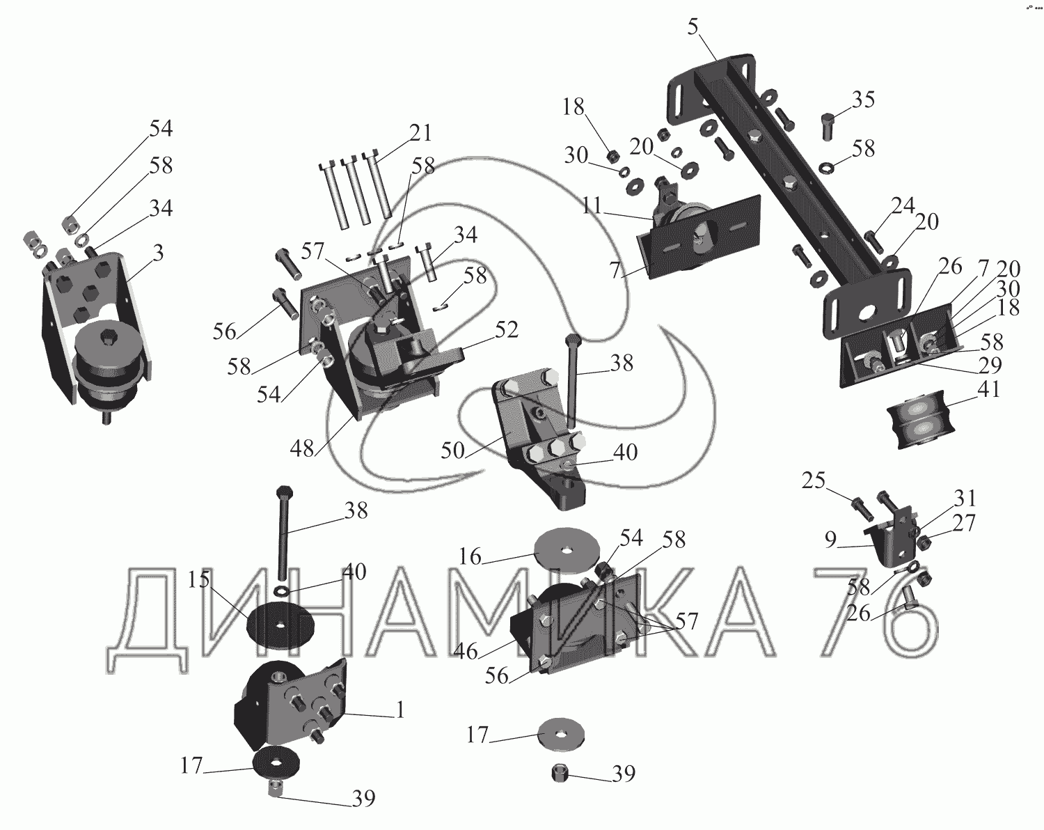 Перечень комплектующих от Крепление двигателя 551669-1001002-010 на МАЗ-551669