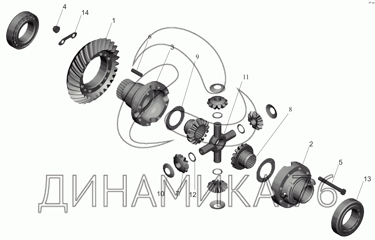 Перечень комплектующих от Редуктор заднего моста. Дифференциал на МАЗ-551669