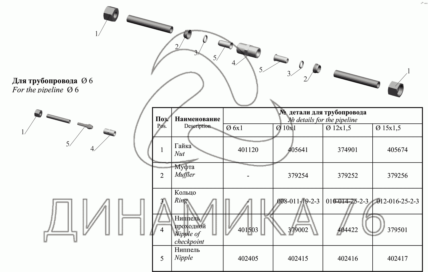 Перечень комплектующих от Соединение для ремонта поврежденных трубопроводов на МАЗ-551669