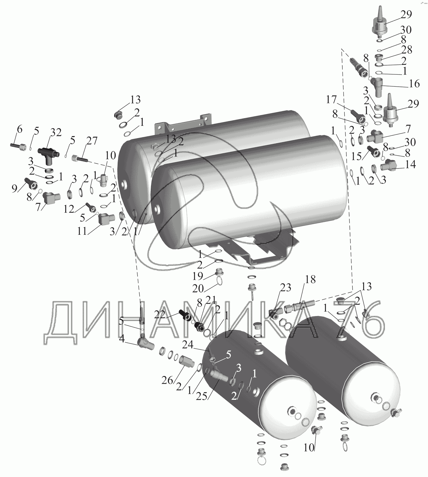 Перечень комплектующих от Установка присоединительной арматуры на ресиверах на МАЗ-551669