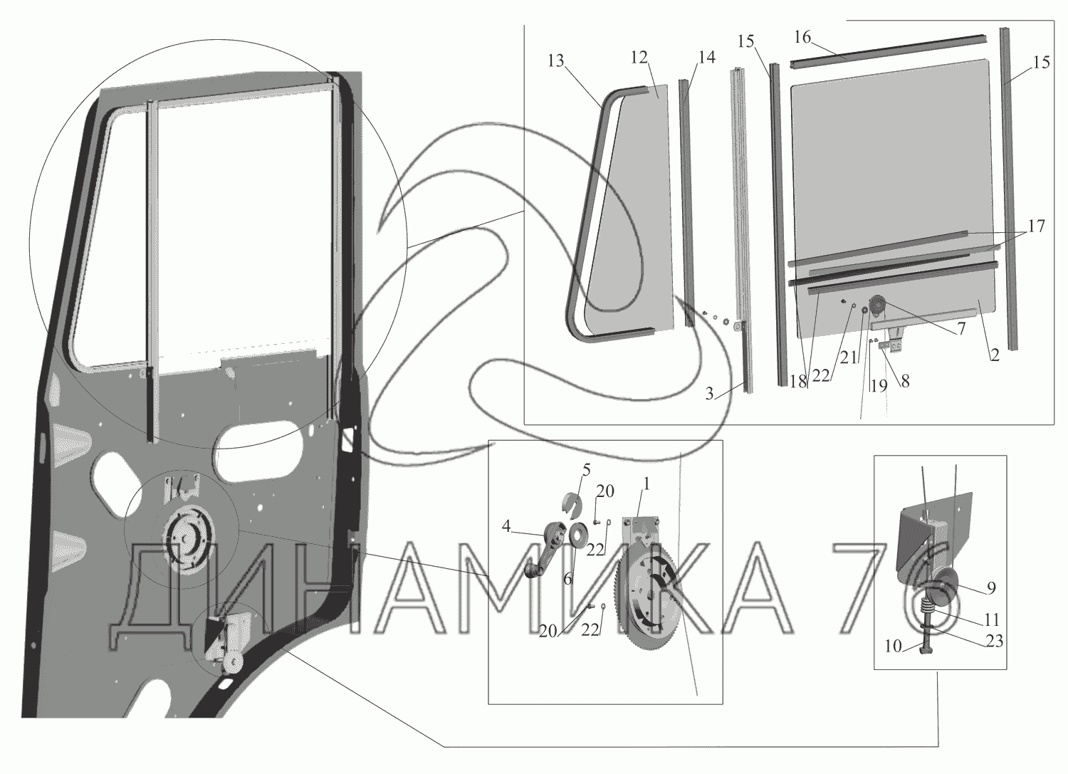 Перечень комплектующих от Установка стеклоподъемника и ручки стеклоподъемника на МАЗ-551669