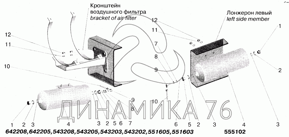 Перечень комплектующих от Ресивер регенерации на МАЗ-5516 (2003)
