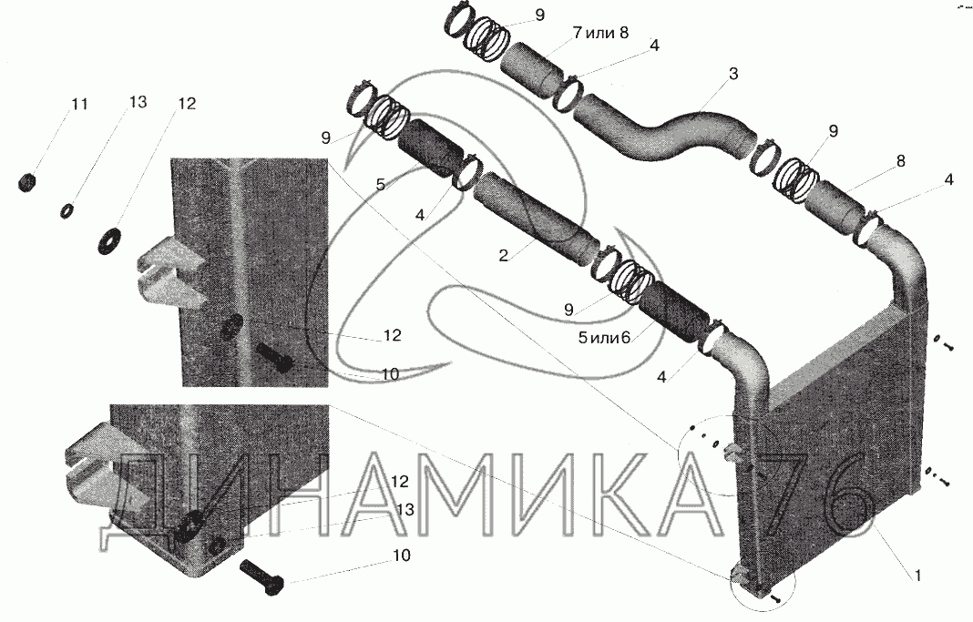 Перечень комплектующих от Система охлаждения наддувочного воздуха на МАЗ-5516 (2003)