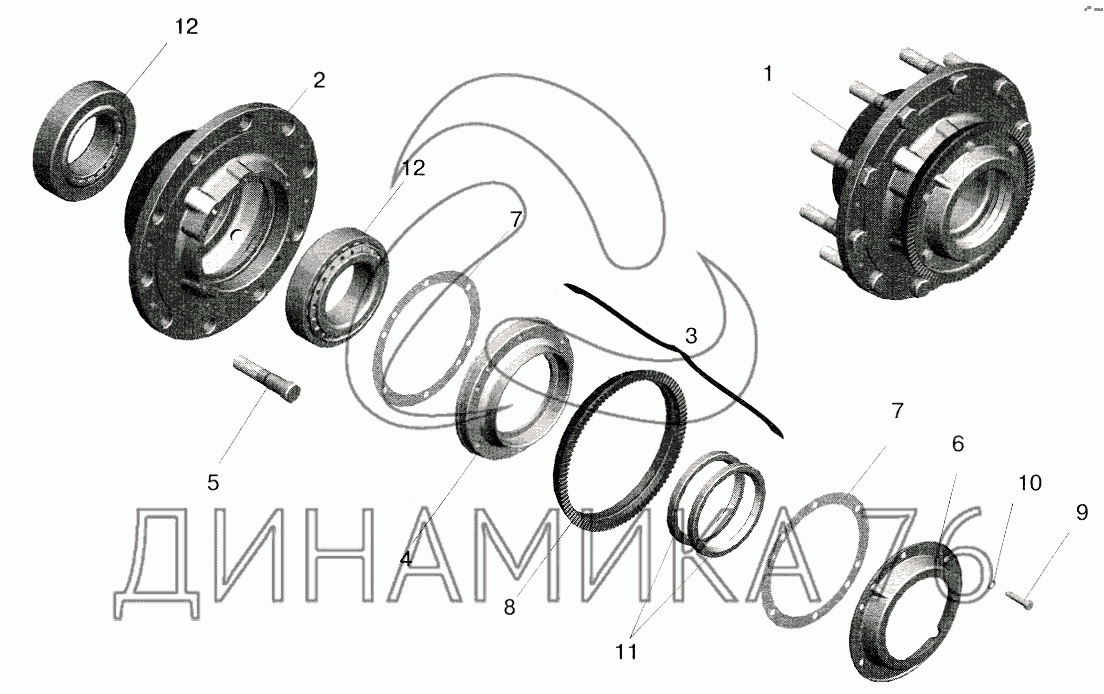 Схемы запчастей предназначены для справочных целей! Мы продаем не все запчасти от Ступица моста на МАЗ-5516 (2003), представленные в этом списке.