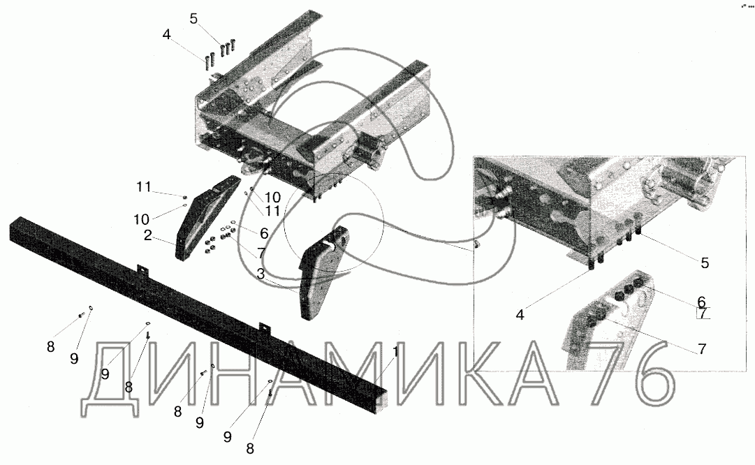 Схемы запчастей предназначены для справочных целей! Мы продаем не все запчасти от Установка заднего бампера на МАЗ-5516 (2003), представленные в этом списке.