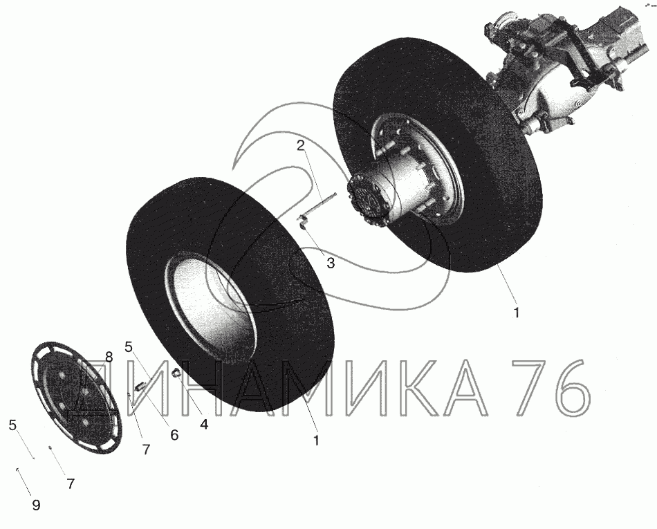 Перечень комплектующих от Установка задних колес на МАЗ-5516 (2003)