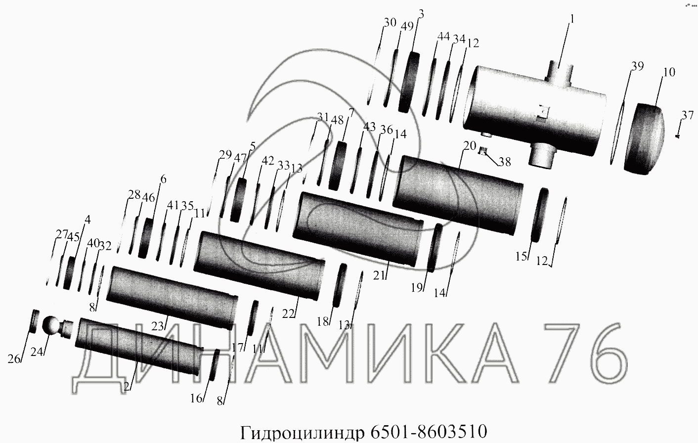 Схемы запчастей предназначены для справочных целей! Мы продаем не все запчасти от Гидроцилиндр 6501-8603510 на МАЗ-5516А5, представленные в этом списке.