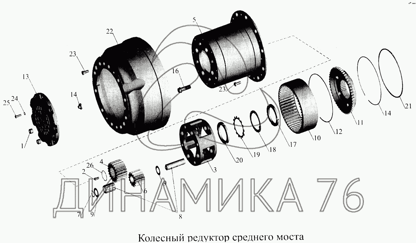Перечень комплектующих от Колесный редуктор среднего моста на МАЗ-5516А5