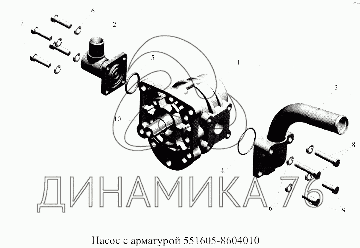 Перечень комплектующих от Насос с арматурой 551605-8604010 на МАЗ-5516А5