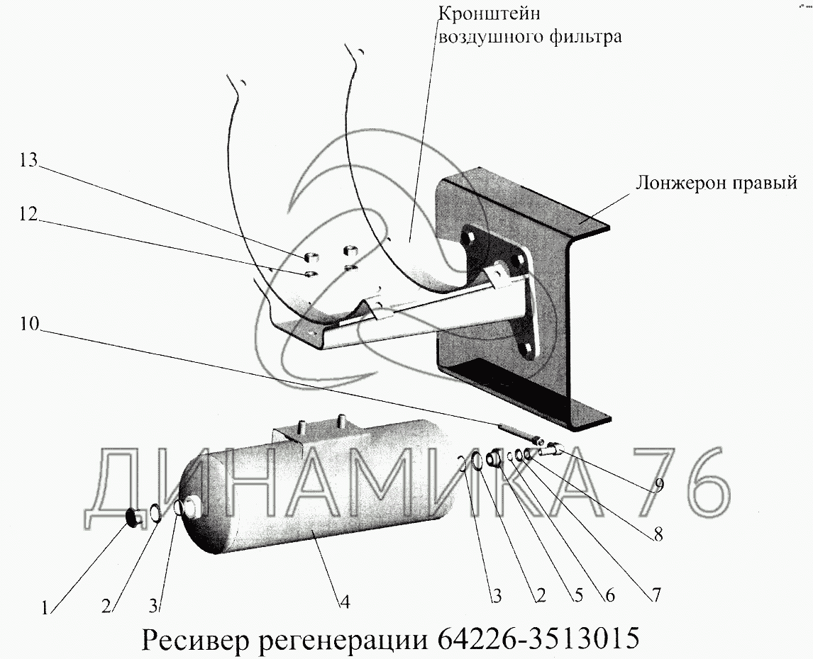 Перечень комплектующих от Ресивер регенерации 64276-3513015 на МАЗ-5516А5