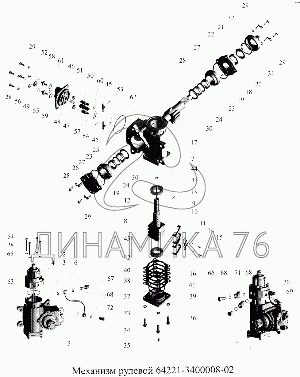 Перечень комплектующих от Рулевой механизм 64221-3400008-02 на МАЗ-5516А5
