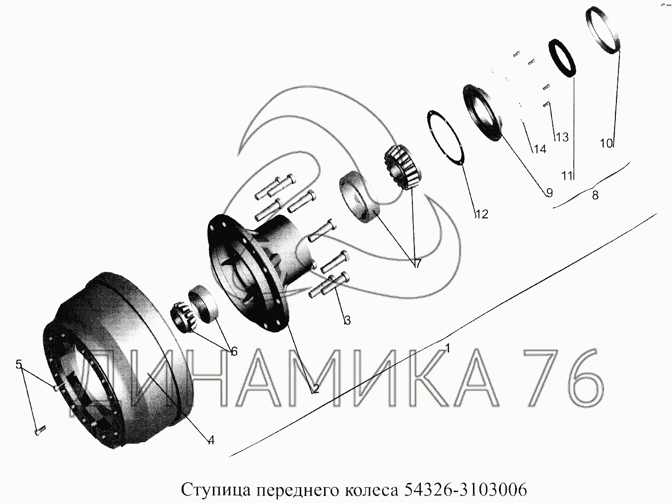 Ступица переднего колеса 54326-3103006 — МАЗ-5516А5: