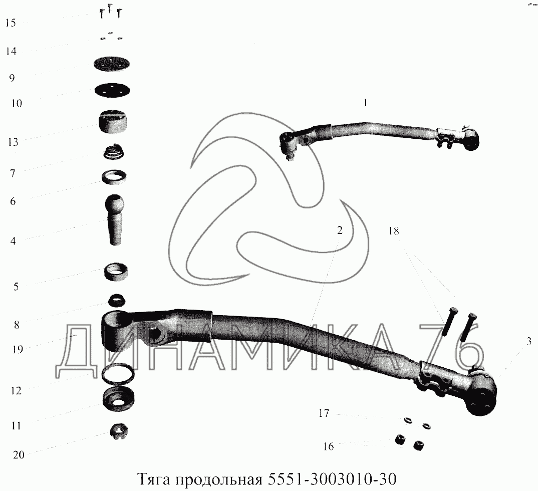Перечень комплектующих от Тяга продольная 5551-3003010-30 на МАЗ-5516А5