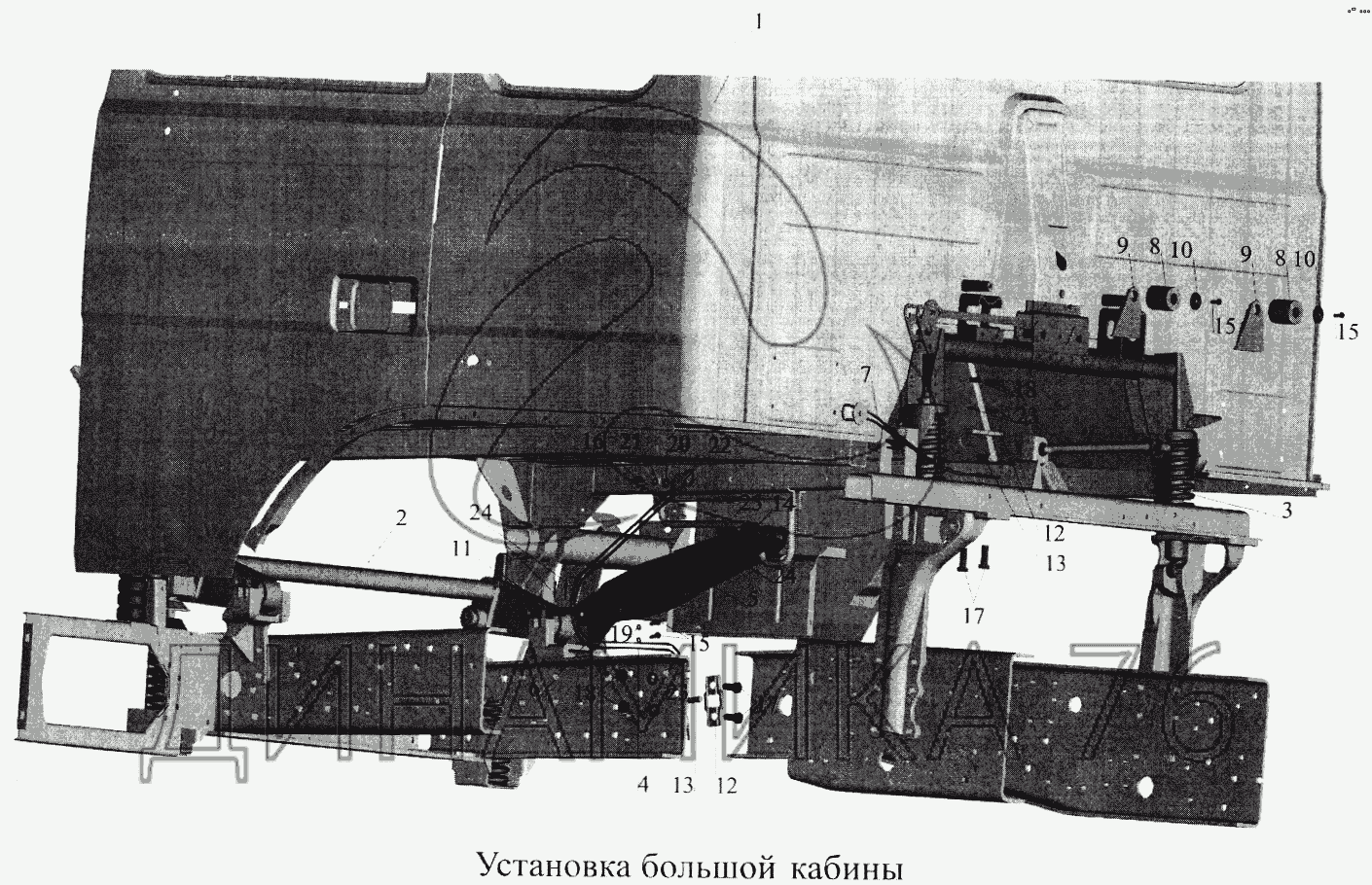 Схемы запчастей предназначены для справочных целей! Мы продаем не все запчасти от Установка большой подрессоренной кабины на МАЗ-5516А5, представленные в этом списке.