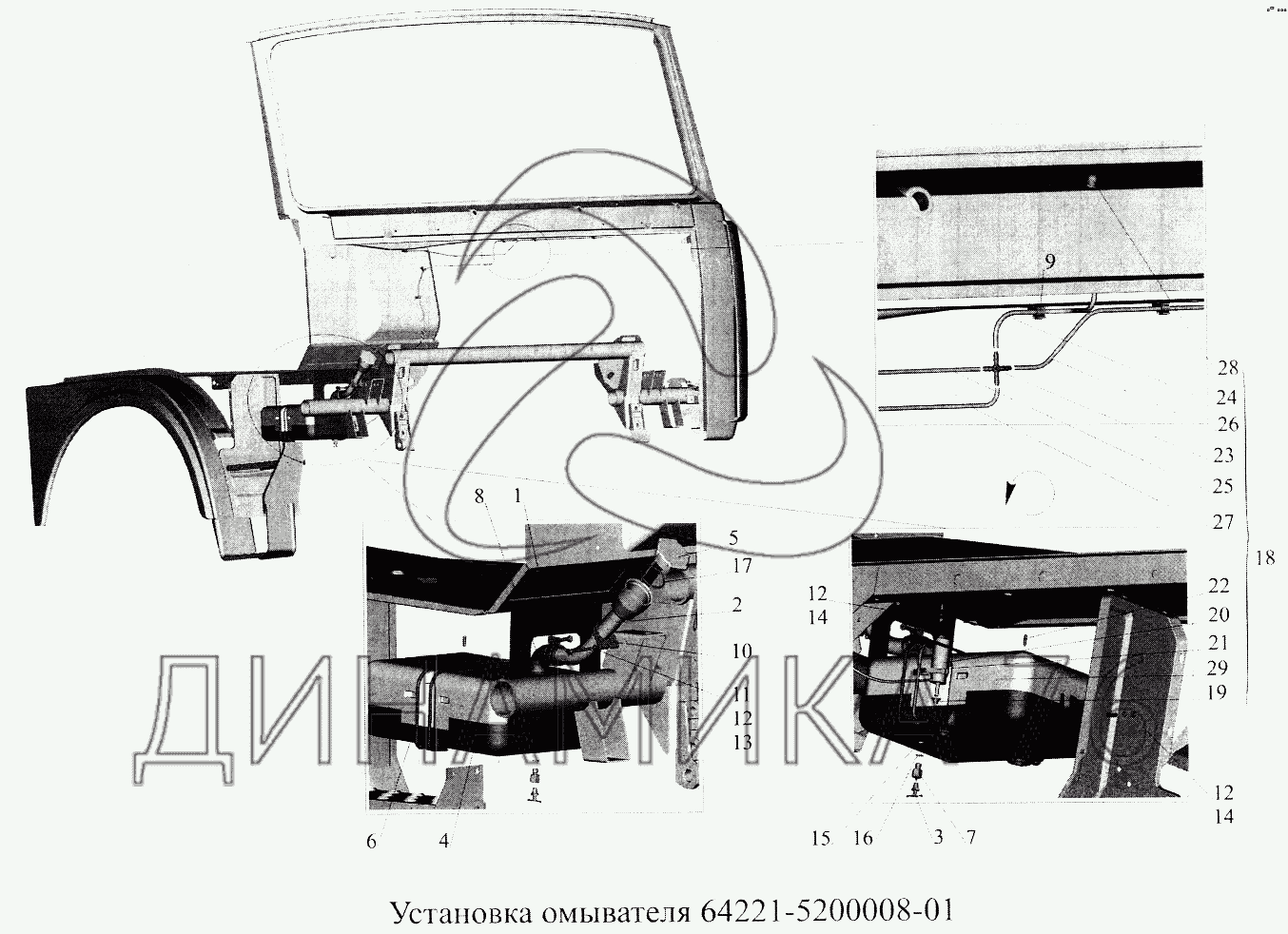 Установка омывателя 64221-5200008-01 — МАЗ-5516А5: