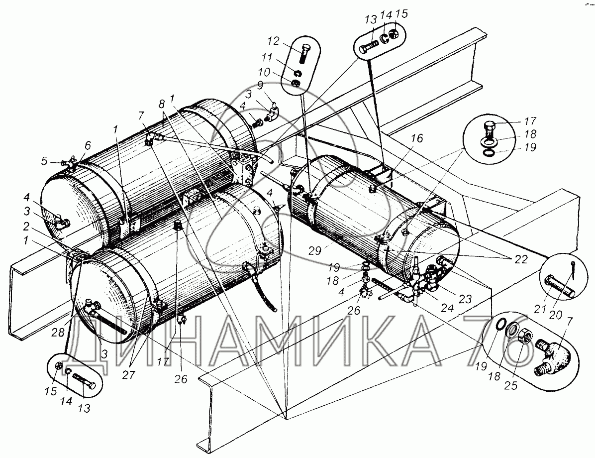 Крепление воздушных баллонов МАЗ-5335 — МАЗ-5549: