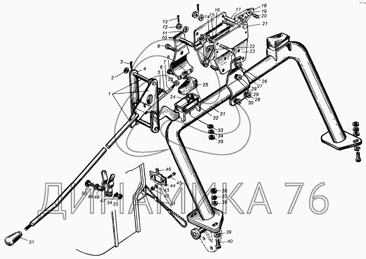 Перечень комплектующих от Механизм кабины запорный на МАЗ-5549