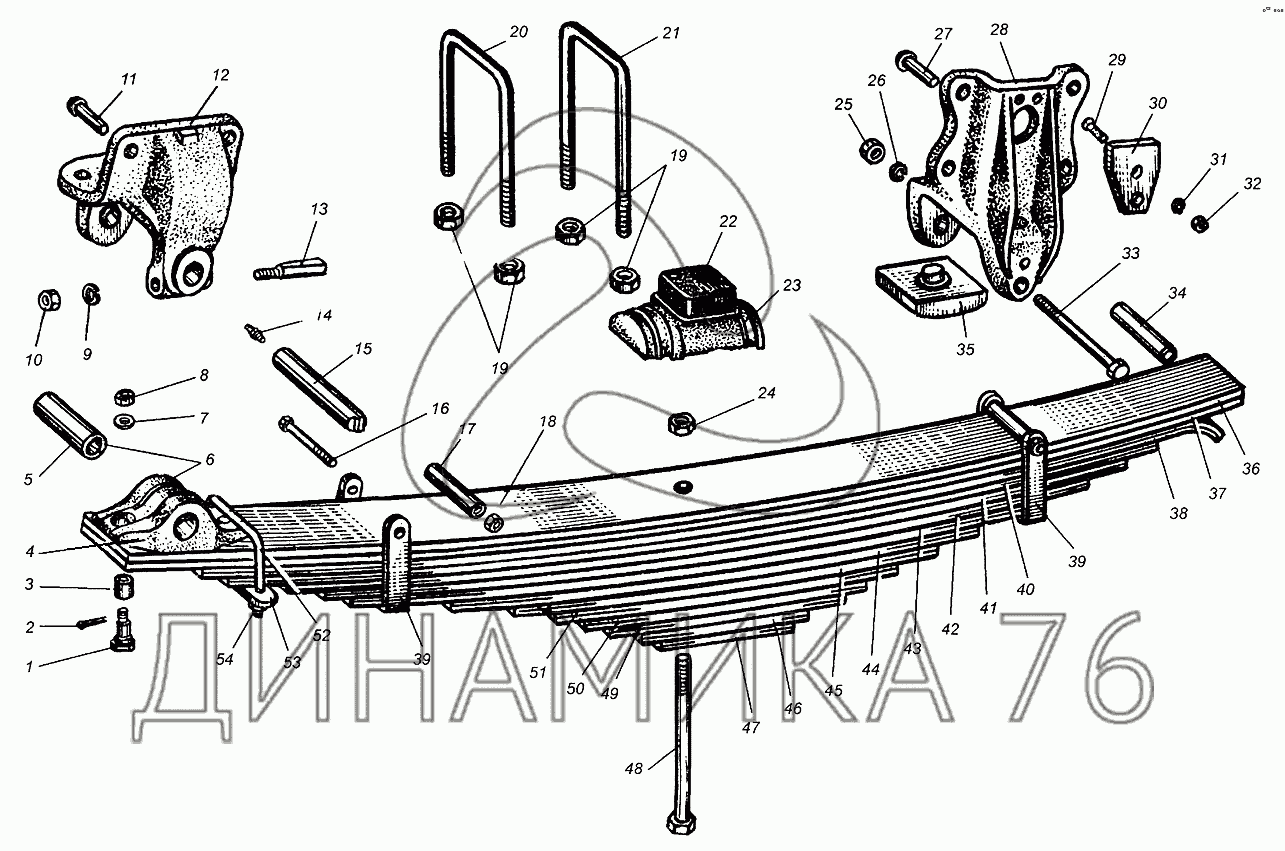 Перечень комплектующих от Рессора передняя на МАЗ-5549