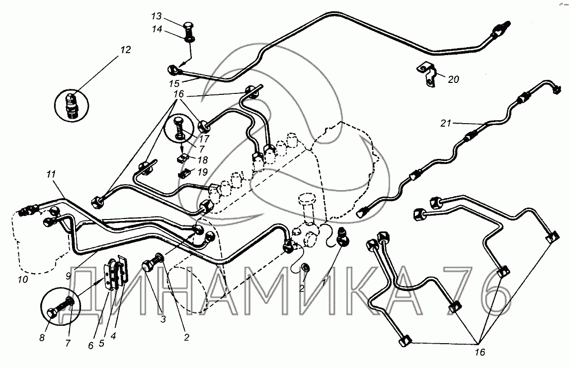 Перечень комплектующих от Топливные трубопроводы двигателя ЯМЗ-238 на МАЗ-5549