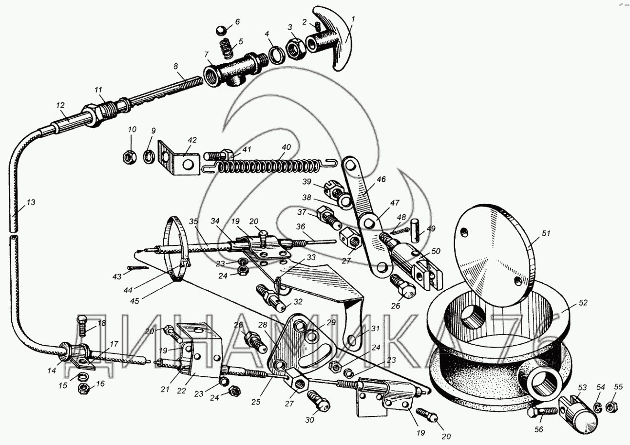 Тяга моторного тормоза и останова двигателя в сборе
