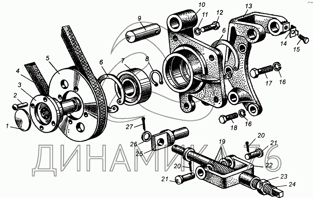Перечень комплектующих от Устройство натяжное насоса на МАЗ-5549