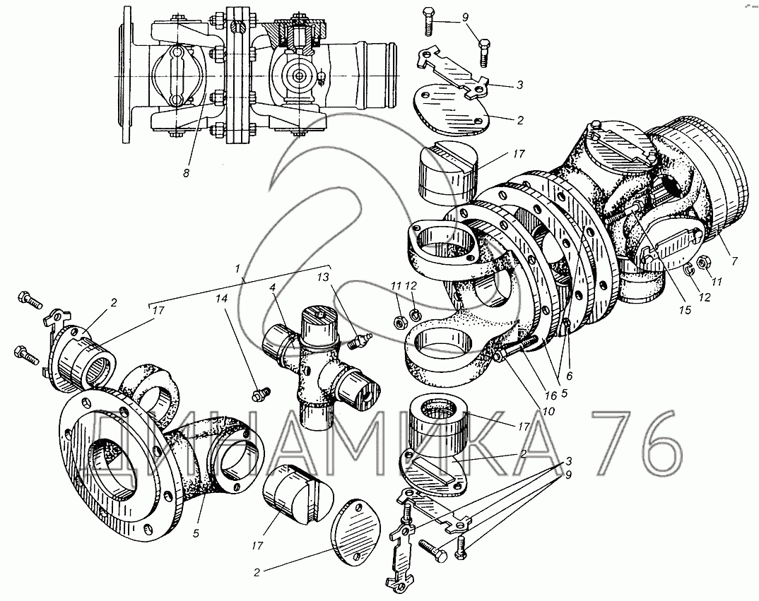 Перечень комплектующих от Вал карданный промежуточный МАЗ-509А на МАЗ-5549