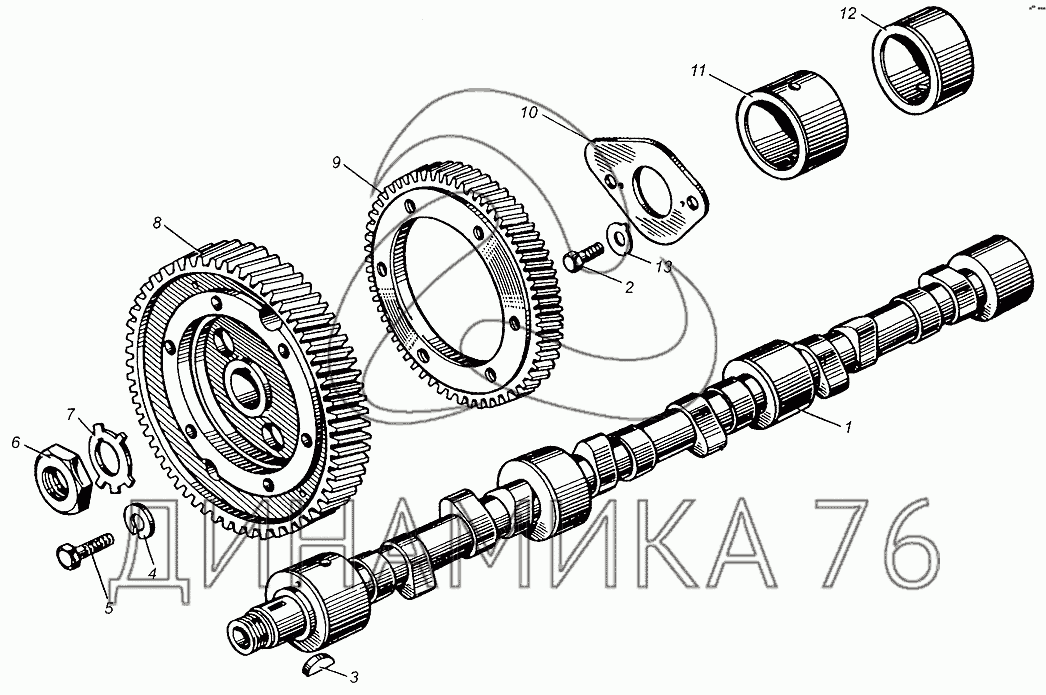 Перечень комплектующих от Вал распределительный на МАЗ-5549
